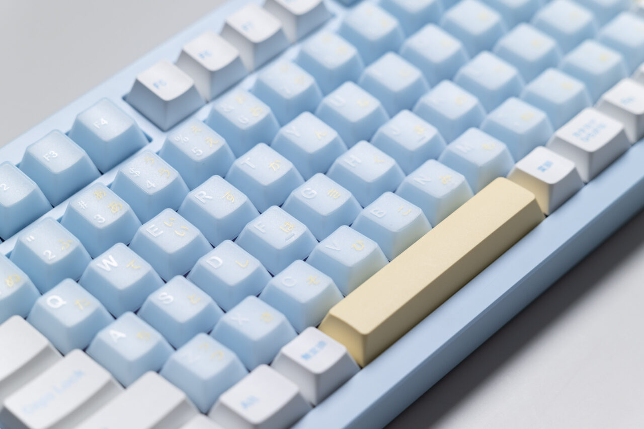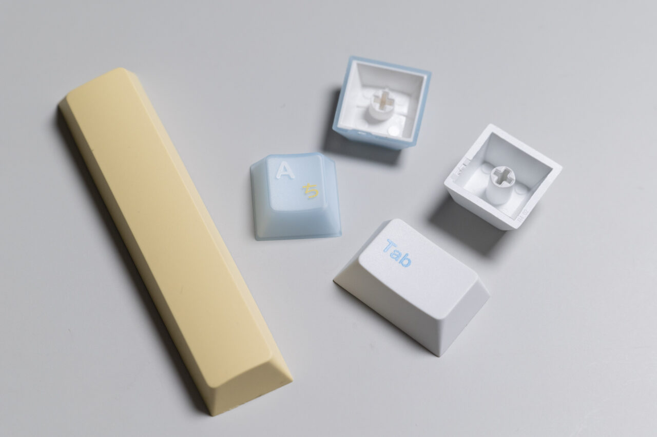US配列のUltraモデルでは、全カラーにPBTダブルショットのキーキャップが採用されています。Golden Pinkを除く両モデルで半透明デザインのキーキャップが使われており、バックライトの光を柔らかく通す仕上がりです。光が透過することで、軽やかで透明感のある印象になります。