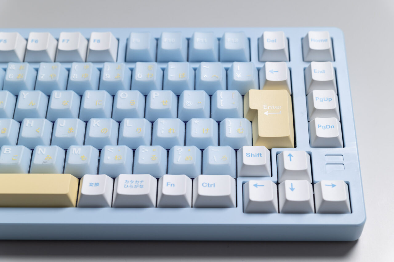 F75では、配列やモデルごとの用途に合わせたキーキャップが採用されています。