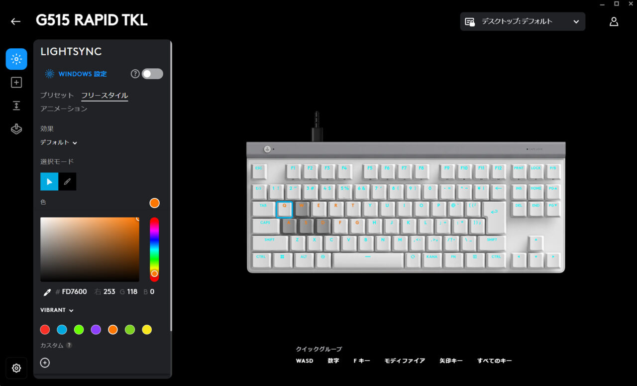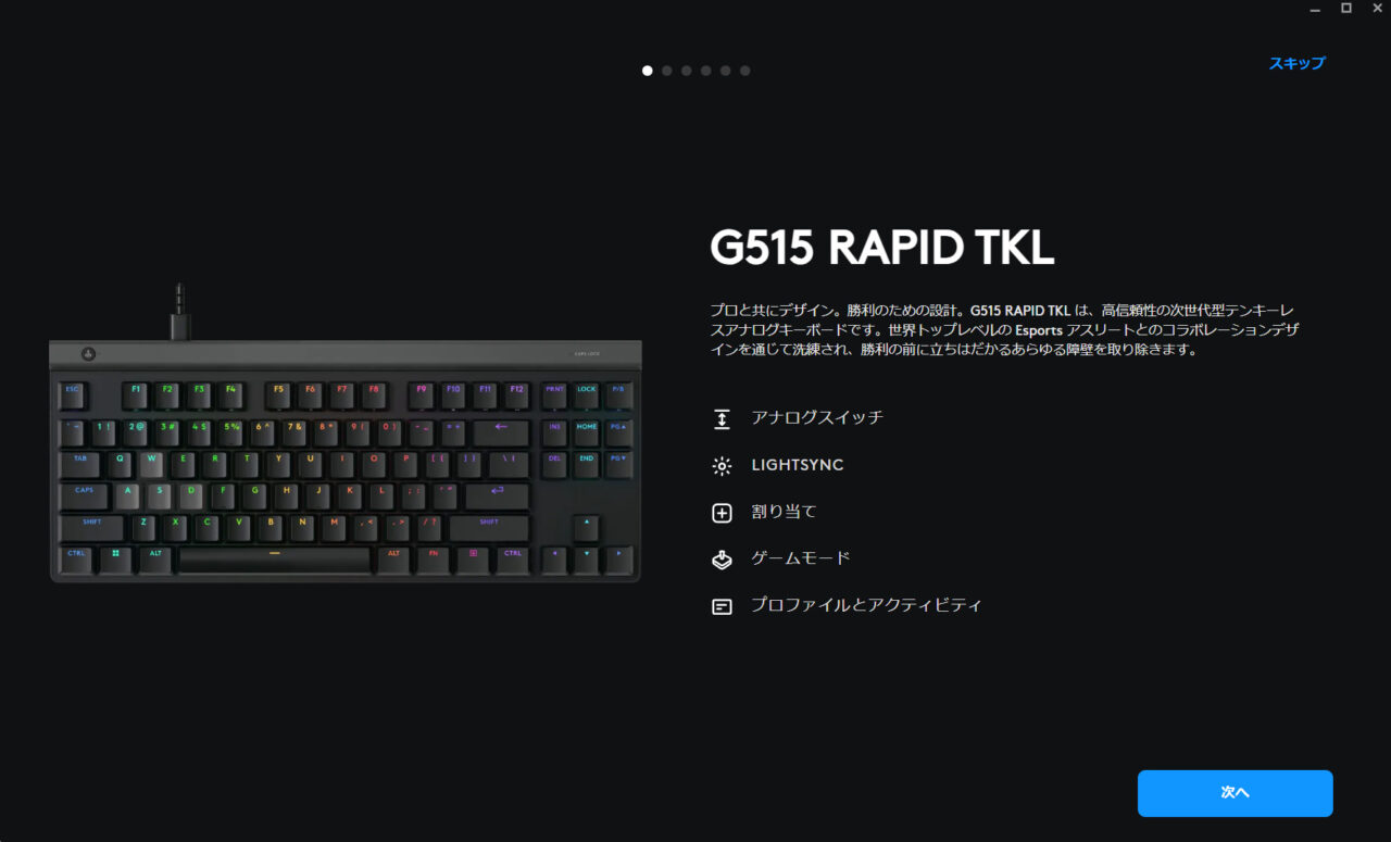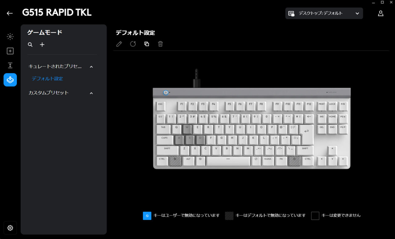 G515 RAPID TKLの各種設定は、Logicoolの専用ソフトウェア「Logicool G HUB」で行います。設定可能な主な項目は以下の通りです。