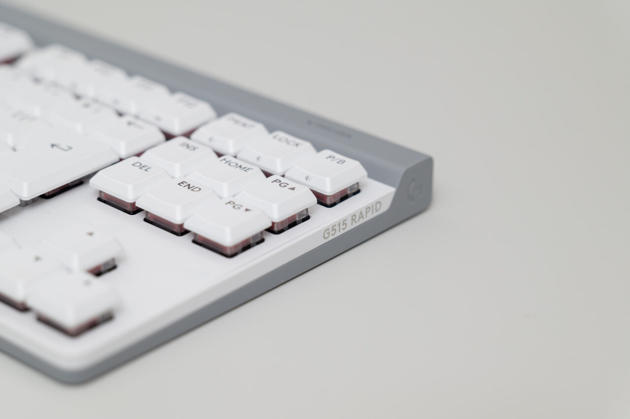 そして2025年10月9日、この流れを受けて登場したのがG515 RAPID TKLです。G515をベースにしつつ、Logicoolとしては初のロープロファイル×磁気式×ラピッドトリガーを実現。ロープロファイル特有の反応の速さと戻りの軽さを、薄型筐体でしっかり体感できるモデルに仕上がっています。